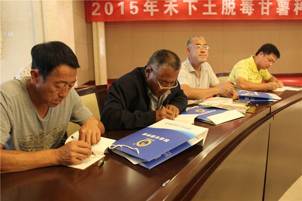 2015年9月24日"2015年禾下土脫毒甘薯種薯基地觀摩會"在磁縣溢泉湖度假村隆重舉行。會議特別邀請徐州市農(nóng)科院副院長、育種專家李強研究員、國家甘薯產(chǎn)業(yè)技術(shù)研發(fā)中心綜合實驗室主任、崗位科學(xué)家李洪民研究員、國家甘薯產(chǎn)業(yè)技術(shù)體系崗位科學(xué)家、河南省農(nóng)科院植保所所長張振臣、國家甘薯產(chǎn)業(yè)技術(shù)體系石家莊綜合試驗站站長、崗位科學(xué)家張松樹研究員、河南省商丘市農(nóng)科院副院長楊愛梅研究員、河北省農(nóng)業(yè)產(chǎn)業(yè)協(xié)會、邯鄲市農(nóng)業(yè)局、磁縣農(nóng)牧局、磁縣工商聯(lián)、磁縣供銷聯(lián)社主管領(lǐng)導(dǎo),以及來自全國各地甘薯育苗企業(yè)、種植大戶等80余人出席觀摩。邯鄲市禾下土種業(yè)有限公司總經(jīng)理陪同參加。