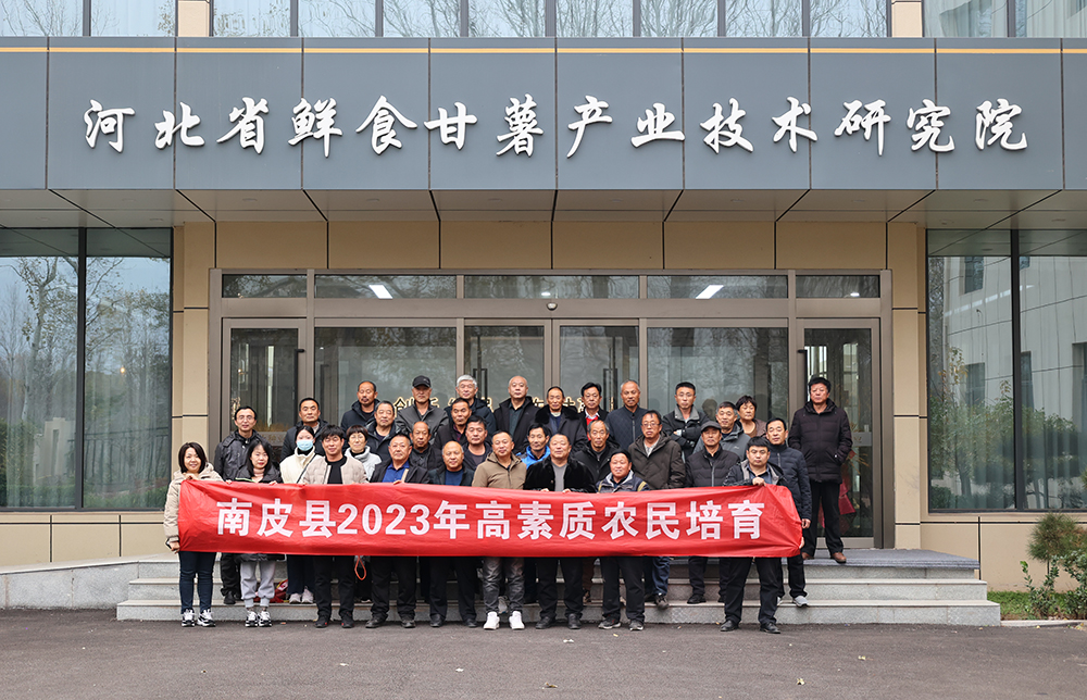 2023年11月25日,河北工程大學(xué)組織南皮縣70余位高素質(zhì)農(nóng)民到禾下土培訓(xùn)學(xué)習(xí)。副總經(jīng)理鄒義杰帶領(lǐng)學(xué)員參觀了甘薯綜合展廳、商品薯貯藏基地,品嘗了最新選育的甘薯新品種,深入了解了甘薯在我國的發(fā)展歷史以及禾下土在甘薯種業(yè)領(lǐng)域的創(chuàng)新發(fā)展情況。并圍繞甘薯種植過程中澆水、施肥、控旺等高產(chǎn)高栽培技術(shù)要點展開培訓(xùn),為南皮縣農(nóng)民開展甘薯種植提供了有益經(jīng)驗。