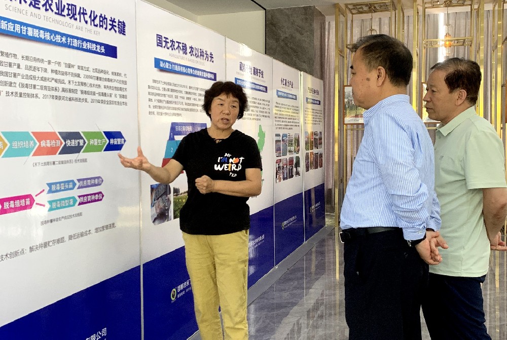 2022年7月2日,雄安新區(qū)雄縣農(nóng)業(yè)農(nóng)村局局長孟凡寅、米家務鎮(zhèn)黨委書記范克勝一行來到禾下土甘薯研發(fā)中心、河北省鮮食甘薯產(chǎn)業(yè)技術(shù)研究院觀摩考察。詳細了解禾下土在甘薯產(chǎn)業(yè)領(lǐng)域育種、脫毒組培、病毒檢測及種苗生產(chǎn)銷售情況。邯鄲市禾下土種業(yè)有限公司總經(jīng)理崔伏喜陪同。