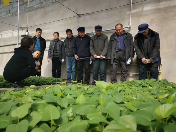 2019年3月6日,邯鄲大名甘薯種植大戶一行10余人到禾下土脫毒甘薯種薯種苗基地現(xiàn)場參觀考察,邯鄲市禾下土種業(yè)有限公司基地負責(zé)人崔勇平陪同參觀??疾靾F先后參觀了禾下土試管苗擴繁基地和600畝標(biāo)準(zhǔn)化脫毒種苗基地,詳細了解禾下土在科研育種、脫毒組培、規(guī)模繁育、科技成果轉(zhuǎn)換等方面的生產(chǎn)經(jīng)營情況,并圍繞脫毒甘薯種苗繁育、技術(shù)等方面進行了深入溝通。