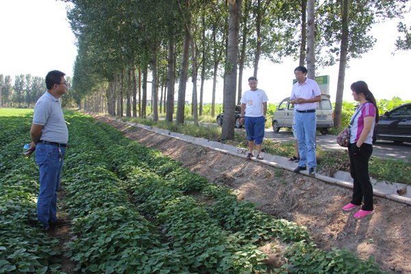 2016年9月2日,河北威遠(yuǎn)生化農(nóng)藥有限公司華北區(qū)工作組一行6人到禾下土脫毒甘薯原種薯基地現(xiàn)場觀摩,邯鄲市禾下土種業(yè)有限公司總經(jīng)理崔伏喜陪同參觀。工作組詳細(xì)了解了禾下土脫毒甘薯原種薯生產(chǎn)基地在科研育種、標(biāo)準(zhǔn)化生產(chǎn)、病蟲草害防治的工作開展情況,并圍繞脫毒甘薯產(chǎn)業(yè)在紅薯專用生物農(nóng)藥、生物肥料等方面進(jìn)行了深入探討。