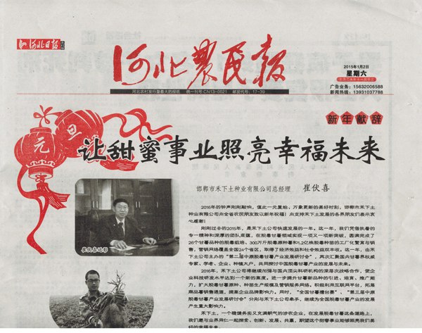 2016年的新年鐘聲即將敲響,值此一元復(fù)始、萬象更新的美好時刻,邯鄲市禾下土種業(yè)有限公司向大家致以新年的祝福!向支持禾下土發(fā)展的朋友們表示衷心的感謝!剛剛過去的2015年,是禾下土快速發(fā)展的一年。這一年,我們憑借執(zhí)著的專注精神和深厚的團隊底蘊,在脫毒甘薯領(lǐng)域?qū)崿F(xiàn)了一個又一個的突破與發(fā)展。我們完成了26個甘薯品種的脫毒組培,300萬斤脫毒原種薯和1.2億株脫毒種苗的工廠化繁育與銷售,營銷網(wǎng)絡(luò)覆蓋全國24個省區(qū),取得經(jīng)濟效益和社會效益雙豐收。這一年,由禾下土主辦的"第二屆中原脫毒甘薯產(chǎn)業(yè)發(fā)展研討會",再次匯聚了國內(nèi)甘薯界權(quán)威專家、學(xué)者、企業(yè)、種植大戶,共同探討中國脫毒甘薯產(chǎn)業(yè)的發(fā)展與未來。2016年,禾下土將繼續(xù)加強與國內(nèi)頂尖科研機構(gòu)的深層次戰(zhàn)略合作,使企業(yè)科技研發(fā)水平達到一個新的高度。進...
