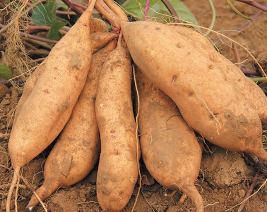 西農(nóng)431① 特征特性:該品種蔓長 1-1.5 米,基部分枝多,蔓、葉、葉脈、葉柄全是淺綠色,葉心臟形。結(jié)薯集中。薯塊上紡錘型。薯皮橙黃、肉桔紅、薯干鮮紅,口感極好,香味濃、甜、面沙,出干率 32-35% 。是烤紅薯、加工薯脯、罐頭、鮮薯干、飴糖等保健食品的好原料???jié)碀n,耐低溫,高抗黑斑病,耐貯運(yùn)。生長勢好,抗病性強(qiáng),高產(chǎn)穩(wěn)產(chǎn)。② 品種來源:該品種由西北農(nóng)業(yè)大學(xué)朱俊光教授育成,1998年通過審定,原代號(hào) 82-43-1(簡稱431)。③ 產(chǎn)量表現(xiàn):產(chǎn)量較高,春薯高產(chǎn)田畝產(chǎn)4000公斤左右,夏薯3000公斤以上。④ 栽培要點(diǎn):⑴培育壯苗,采用秋薯留種。⑵施足基肥,早追苗肥,重施"夾邊肥",后期看莖葉生長情況酌情追施"裂縫肥"或根外追肥。⑶適期早插合理密植。春薯每畝植3000株,夏薯每畝植3500株⑷適應(yīng)性廣,耐旱耐...